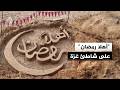 .. فلسطيني ينحت عبارة -أهلا رمضان- على رمال الشاطئ